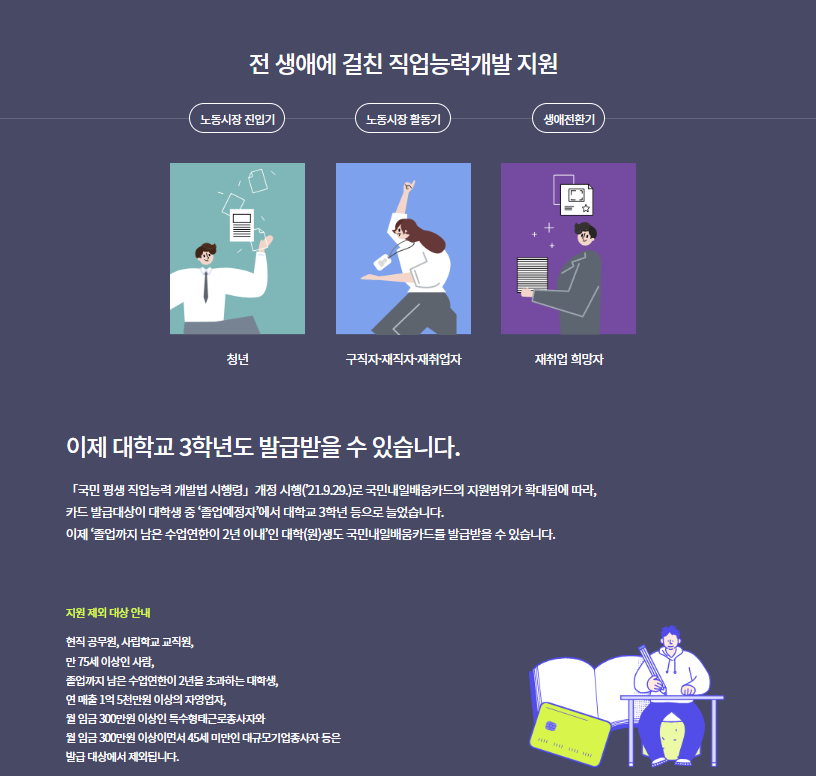 학생, 청년, 구직자, 재직자, 재취업자, 재취업희망자, 자영업자 등 모두가 대상이지만, 제외대상도 있습니다.