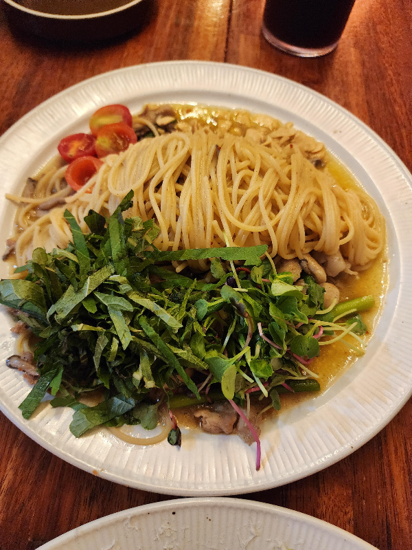 오일파스타는 약간의 매콤함과 깻잎이 느끼함을 잡아줘서 질리지 않게 끝까지 맛있었어요.