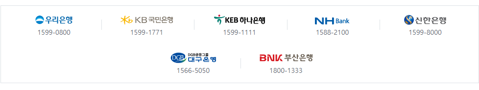 대출을 취급하는 수탁은행들은 우리은행, 국민은행, 하나은행, 농협, 신한은행, 대구은행, 부산은행입니다.