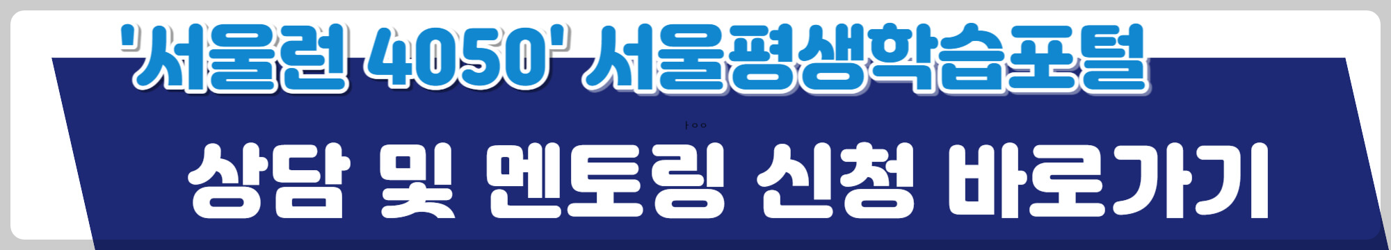 - '서울런 4050' 서울평생학습포털 메인화면 상단 메뉴 '상담 및 멘토링' 클릭